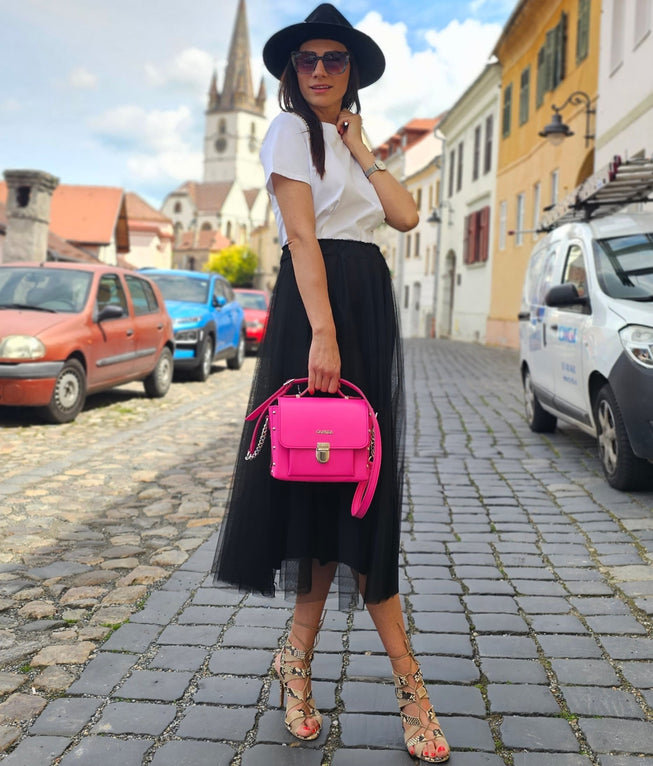 Ai lua cu tine un infinit de lucruri. Dar stii prea bine care sunt esentiale. Si da, incap aici! Geanta piele naturala matlasata. Interiorul este prevăzut cu microfibra și 2 buzunare.Manerul scurt este cu fermoar. Bareta lunga este chinga cu...