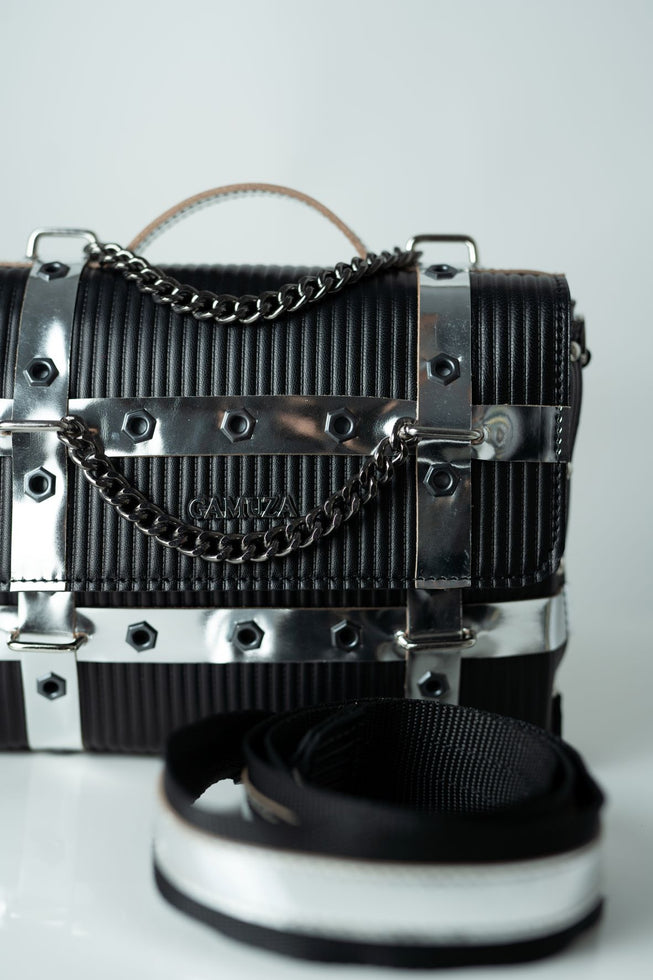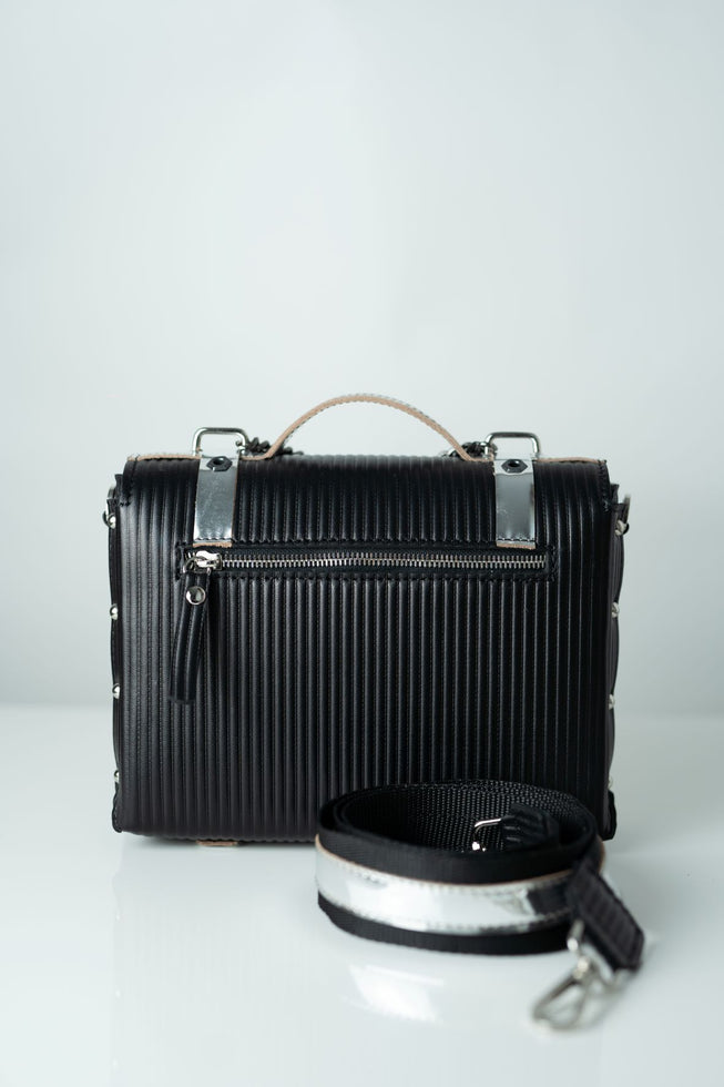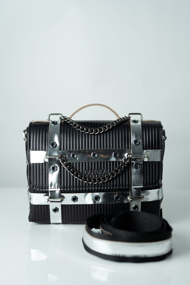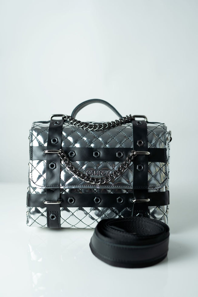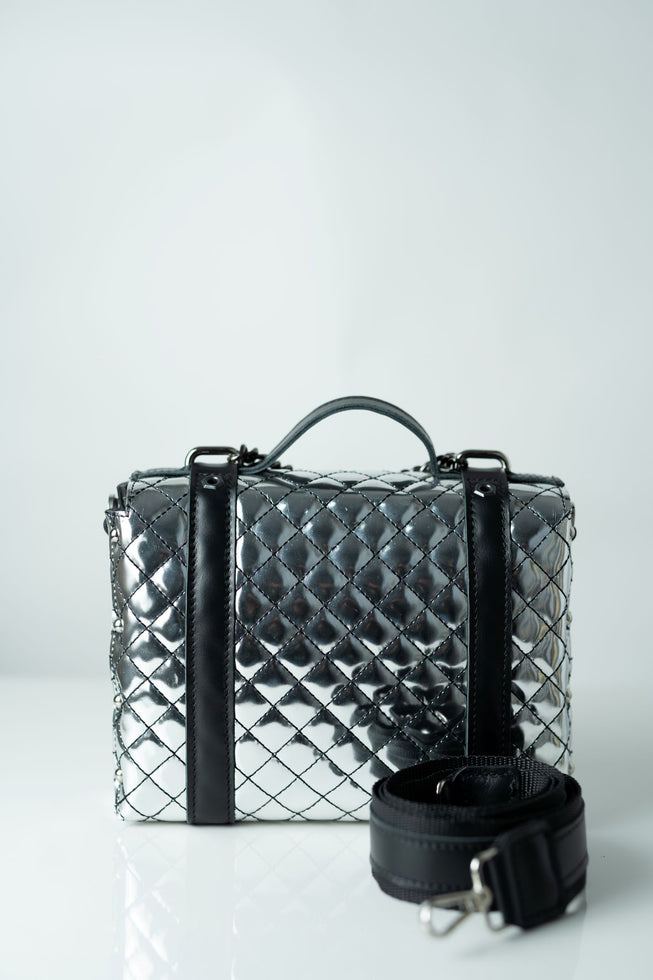 Taguri: accesorii negre, Argintiu, Genti, metalic, mica, piele matlasata
