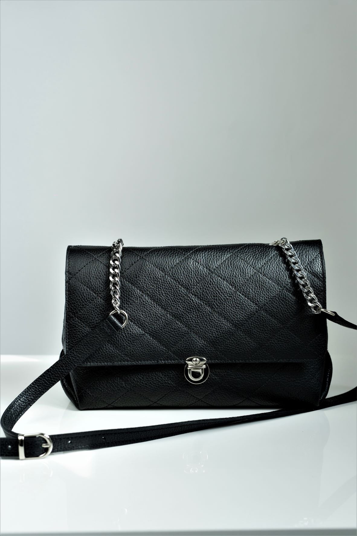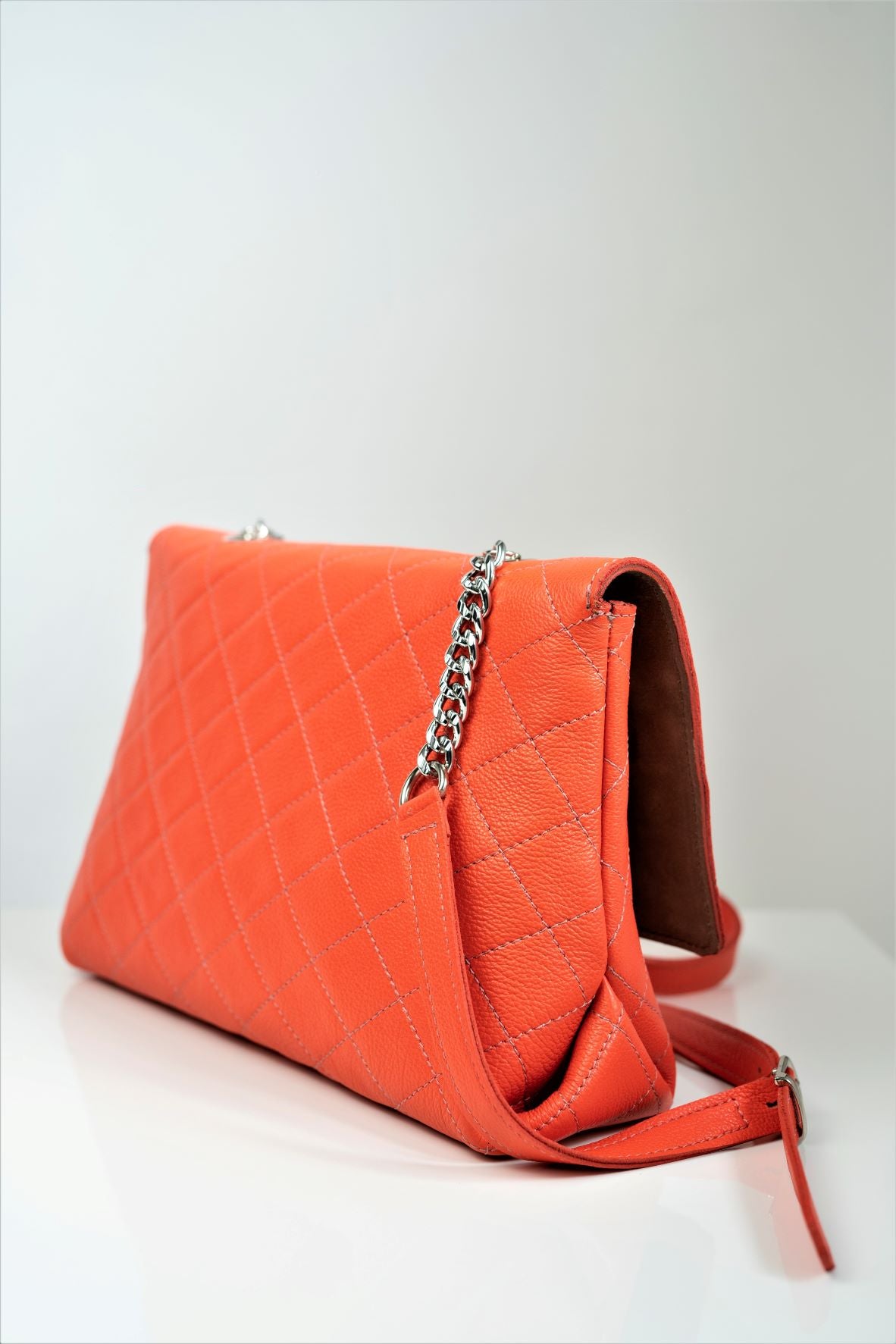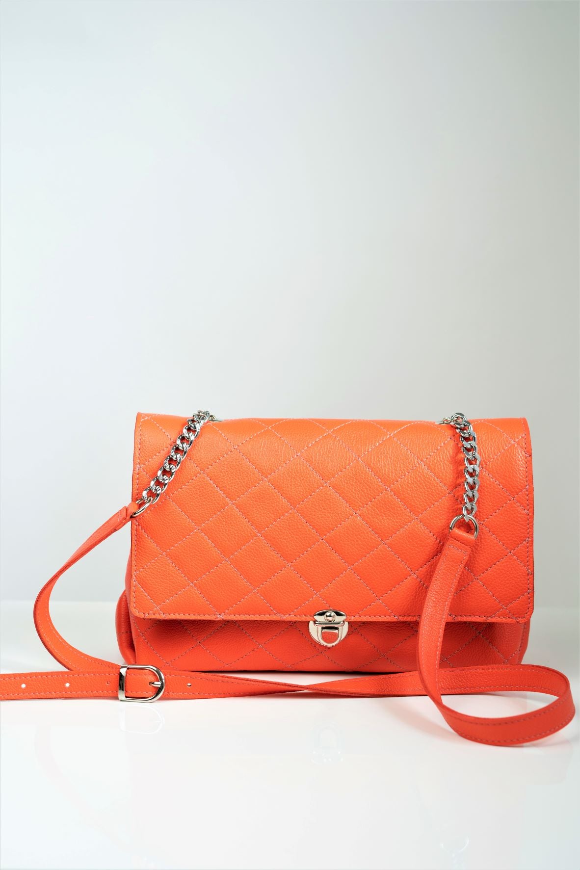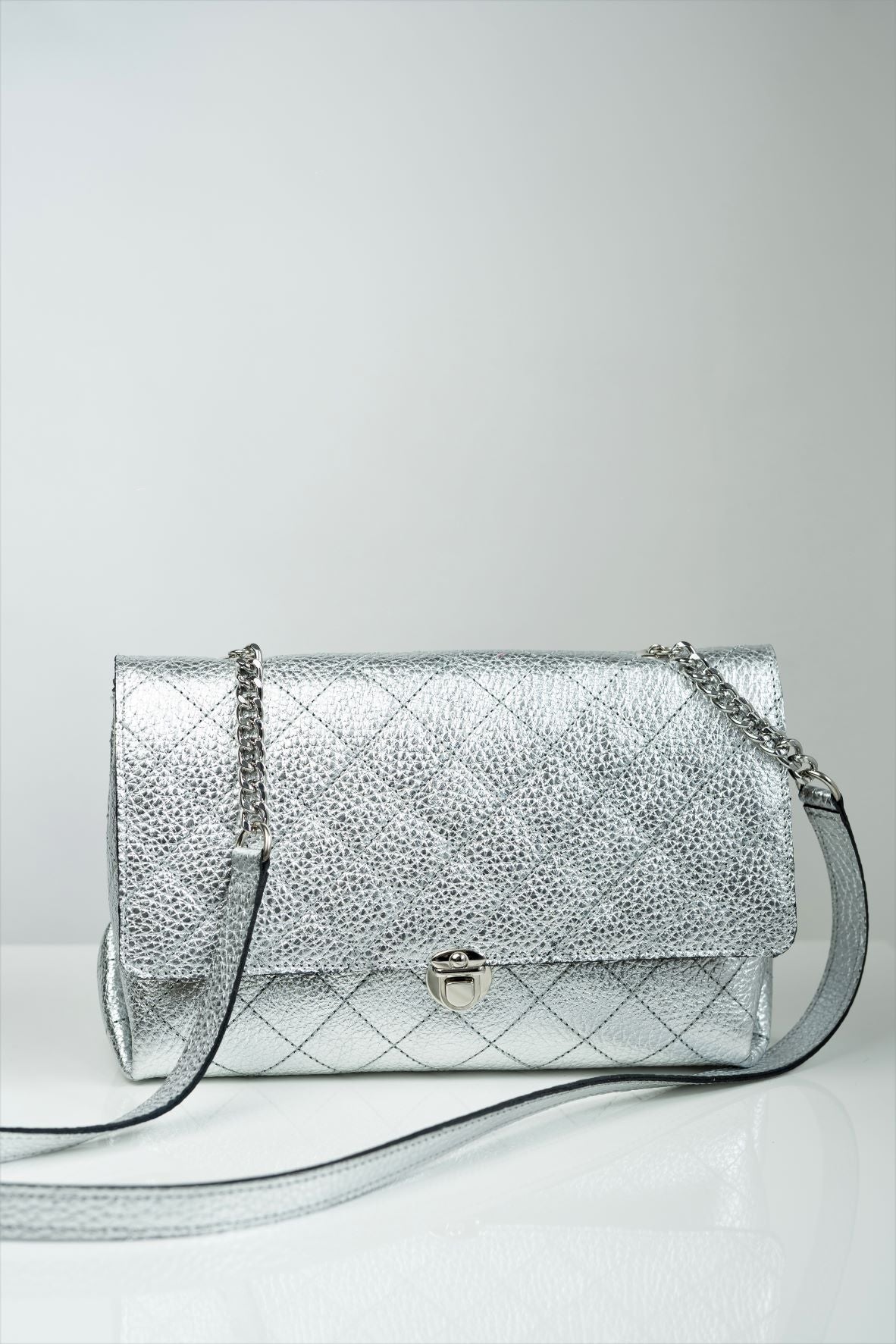 Geanta din piele naturala cu presaj. Marime medie. Model matlasat cu burete.
