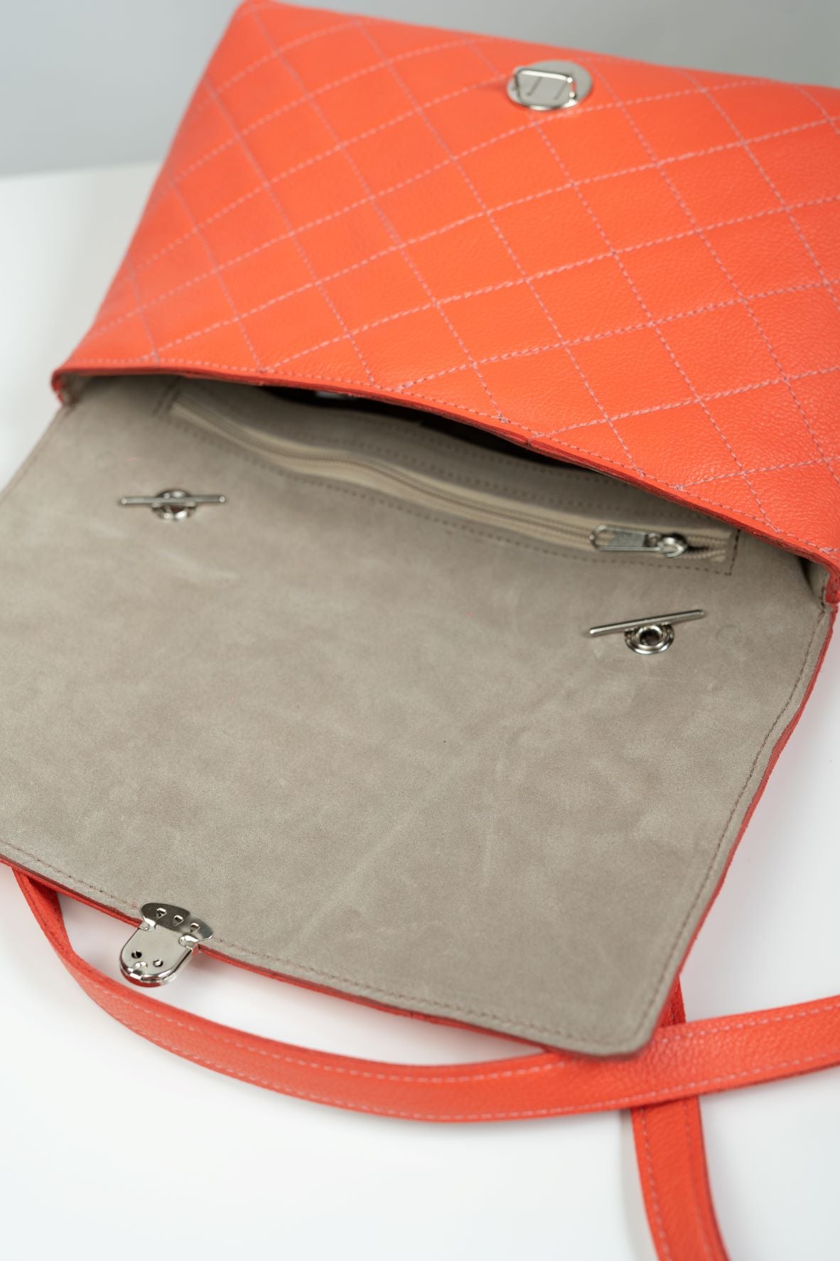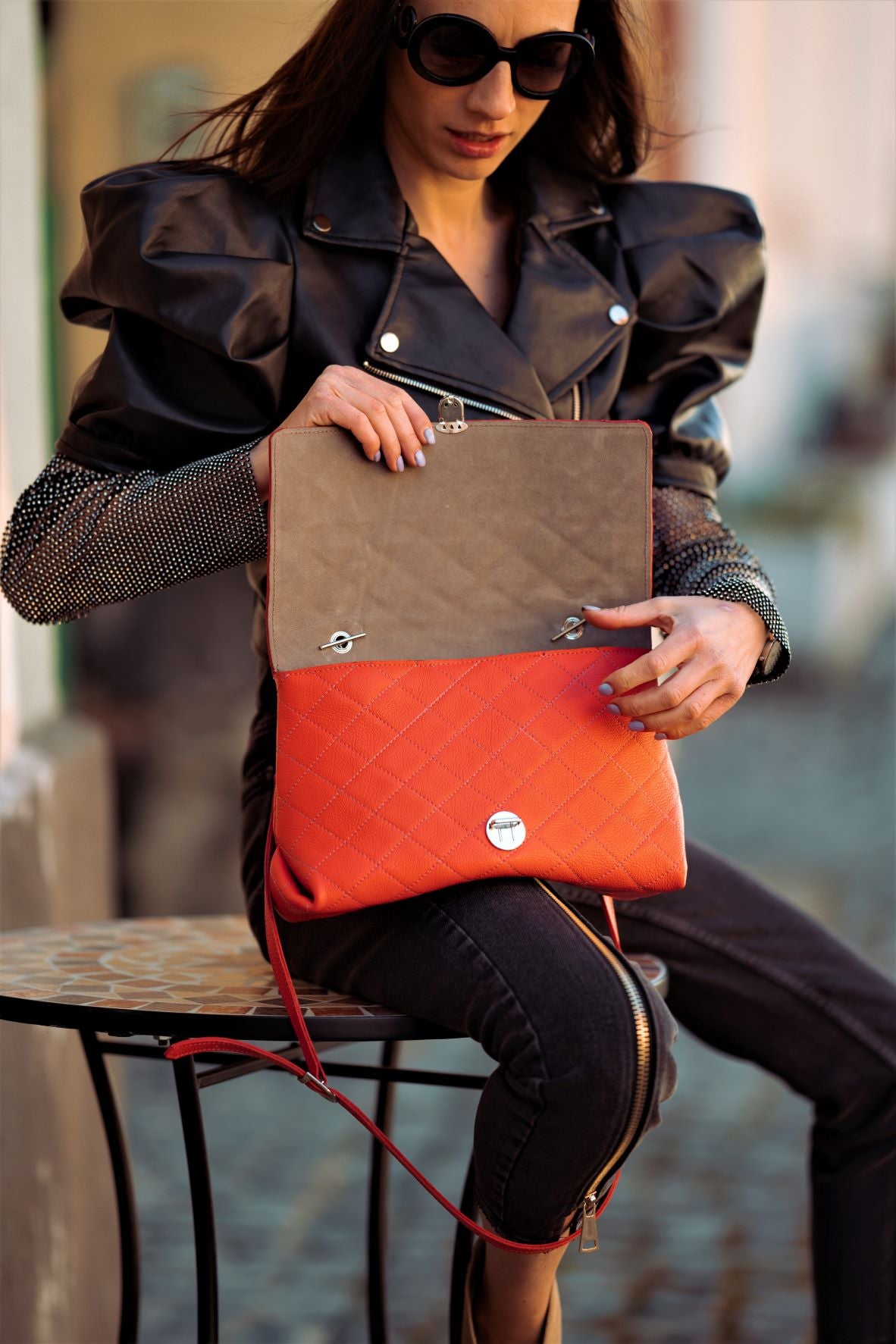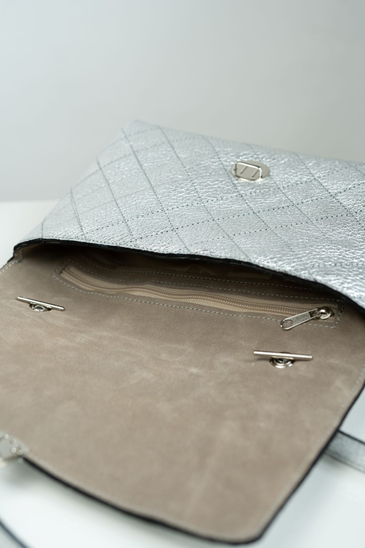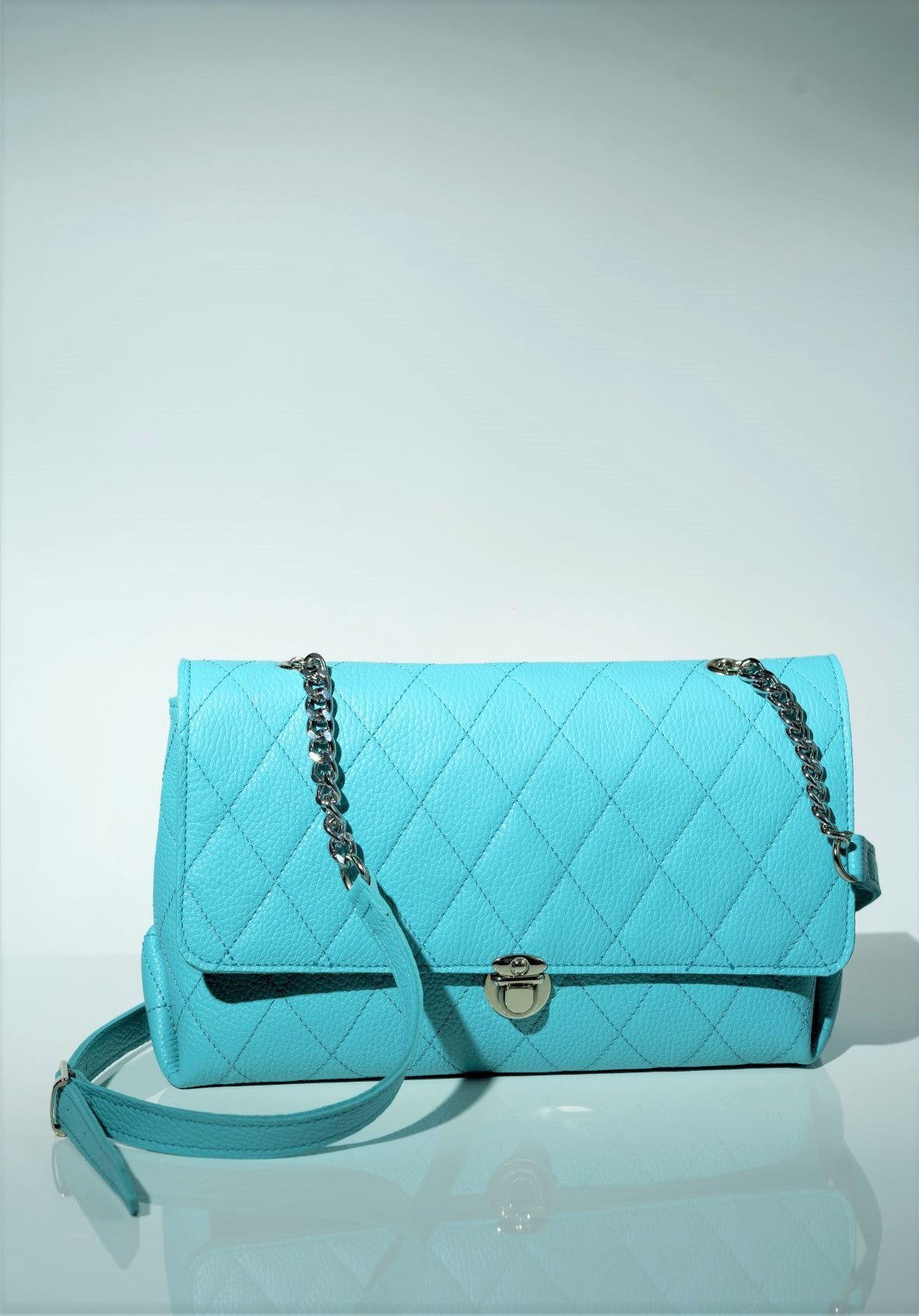 Geanta din piele naturala cu presaj. Marime medie. Model matlasat cu burete.