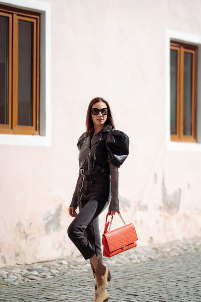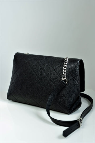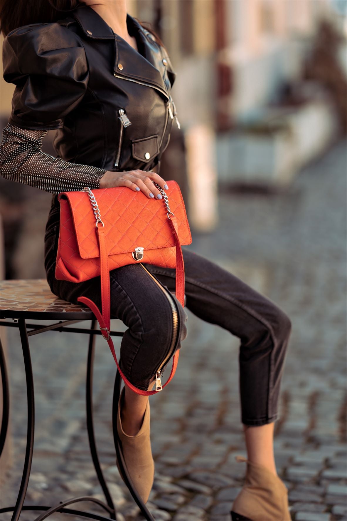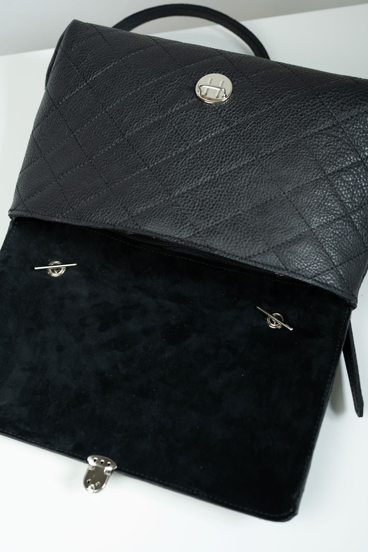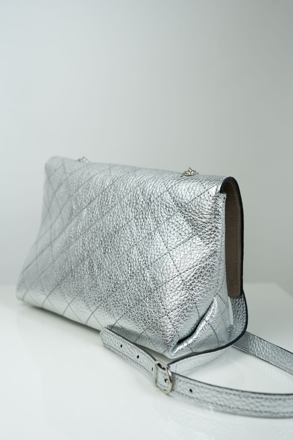 Geanta din piele naturala cu presaj. Marime medie. Model matlasat cu burete.
