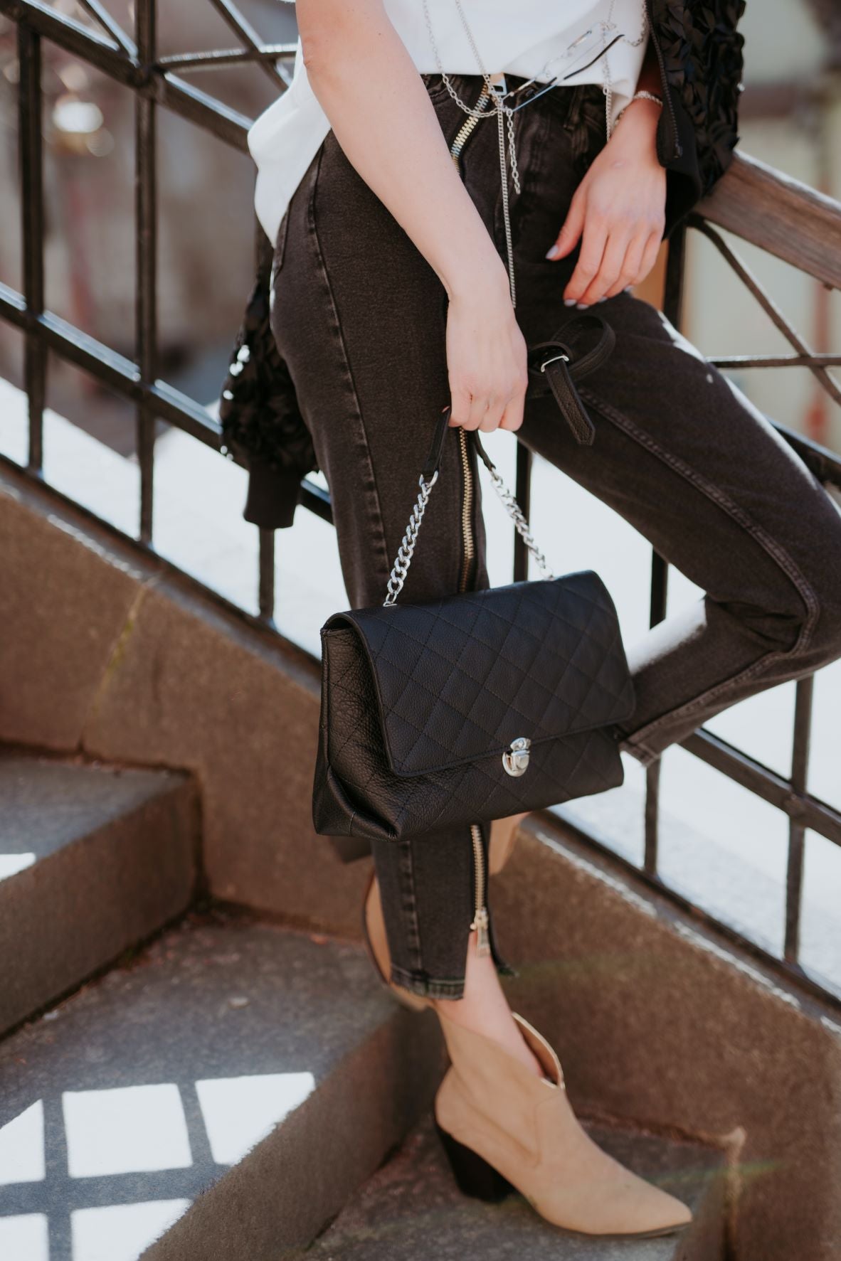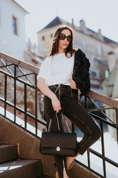 Taguri: Genti, lanturi, medie, Negru, piele cervo