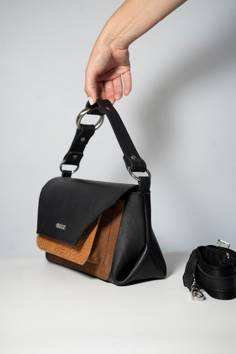 Cel mai mare curaj este sa fii tu insati! Fata de tine in primul rand si fata de ceilalti! Geanta-borseta ce se poate purta fie impreuna, fie separat: doar borseta sau doar geanta. Geanta din piele naturala cervo cu buzunar...