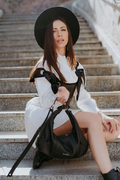Taguri: gamuza, Genti, medie, Negru, piele cervo