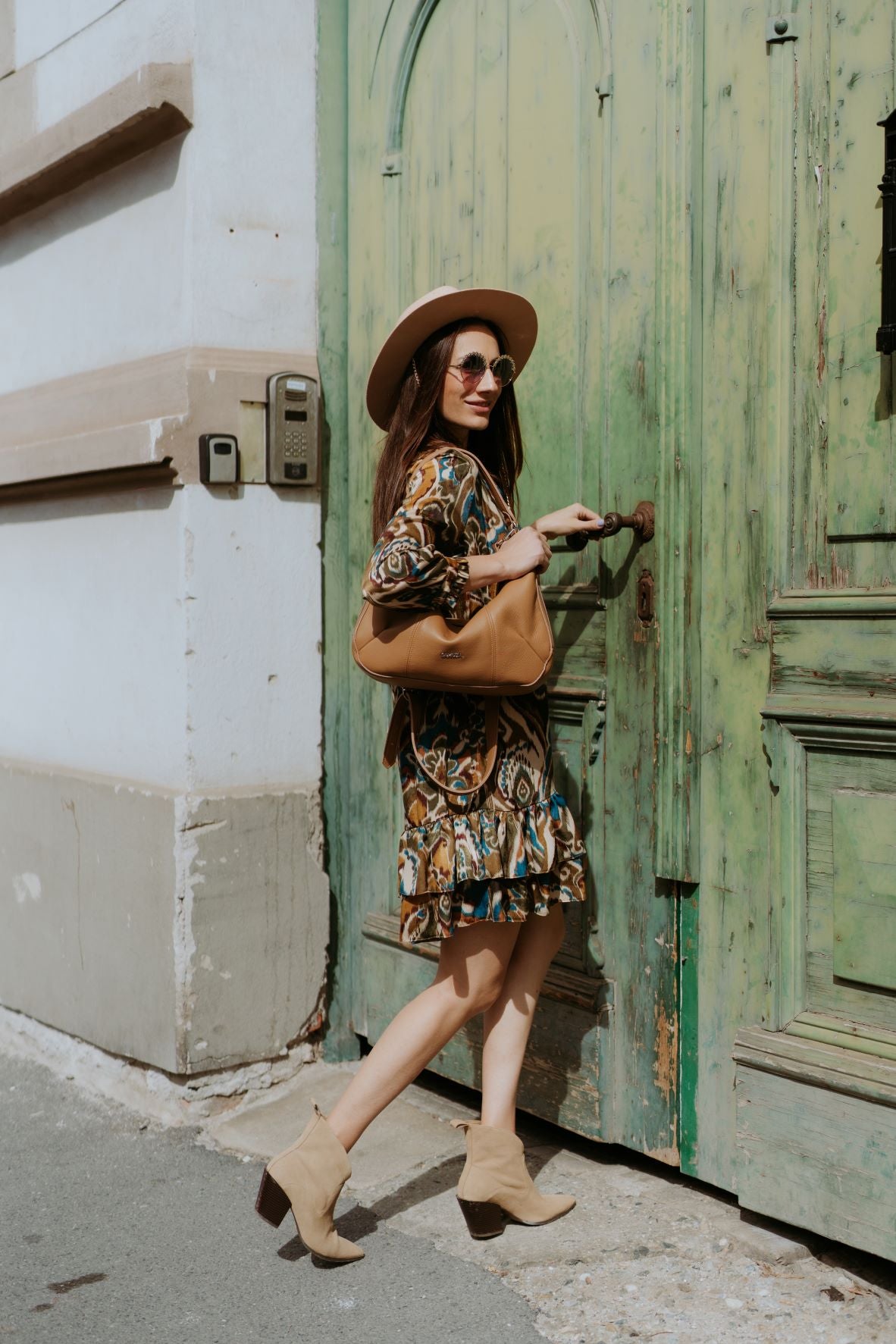 Geanta piele naturala cu bareta reglabilă. Se poate purta și crossbody.  Marime medie-mare