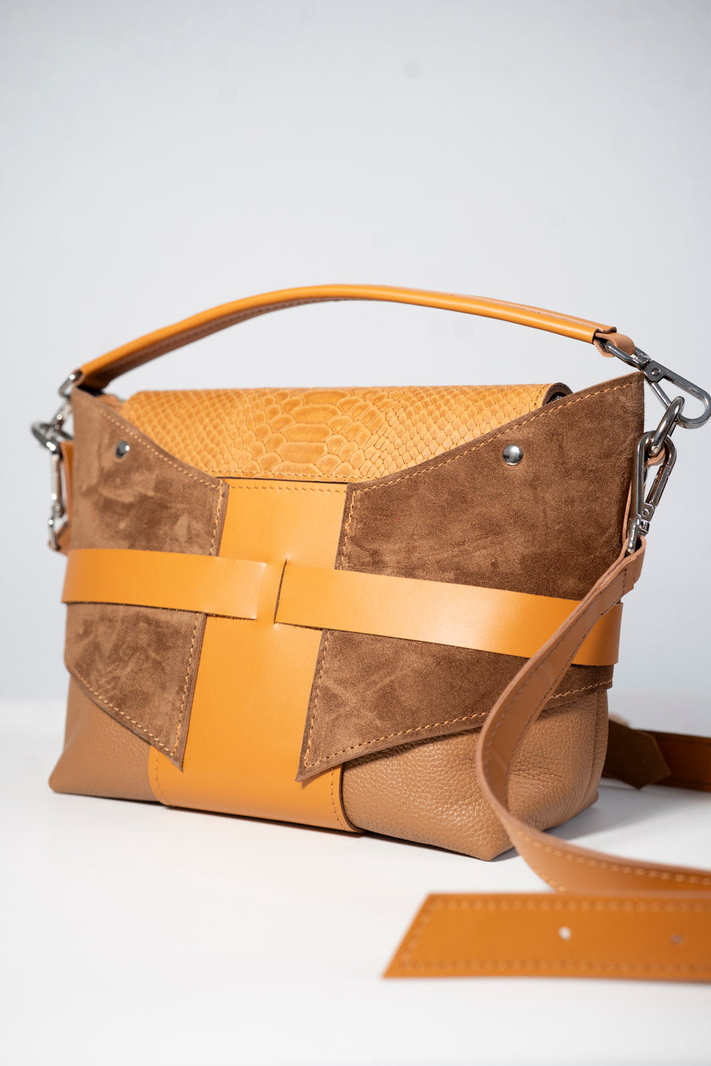 Cel mai mare curaj este sa fii tu insati! Fata de tine in primul rand si fata de ceilalti! Geanta-borseta se poate purta fie impreuna, fie separat: doar borseta sau doar geanta. Geanta din piele naturala cervo. L=31cm; l=21cm Borseata...