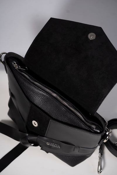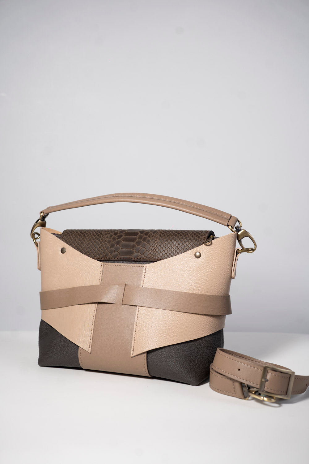 Pentru doua stari de spirit. Amandoua pozitive..... Geanta din piele naturala cu 2 capace diferite. Model marime medie, prevazut cu 3 compartimente individuale. Bareta lunga este chinga cu piele naturala (110cm) Lungime: 28 Latime: 12 Inaltime: 18