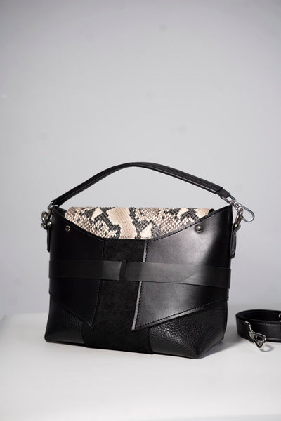 Unul dintre cele mai frumoase sentimente in viata este.....libertatea de a alege. De a alege lucruri ce ne plac si ne incanta. Geanta din piele naturala cu piele imprimeu sarpe. Marime mica-medie. Bareta lunga se poate detasa si se poate...
