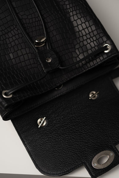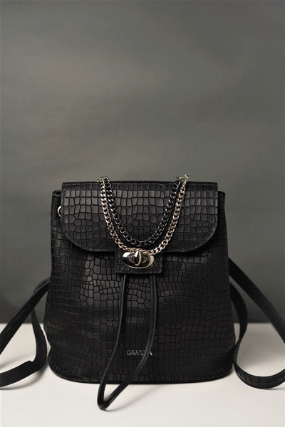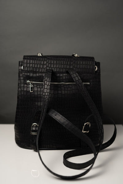 O linie de ghiozdane ce te poarta cu feminitate pretutindeni. Casa ta departe de casa... Ghiozdan piele naturala cu piele imprimeu croco. Marime medie Lungime: 25 Latime: 7 Inaltime: 22