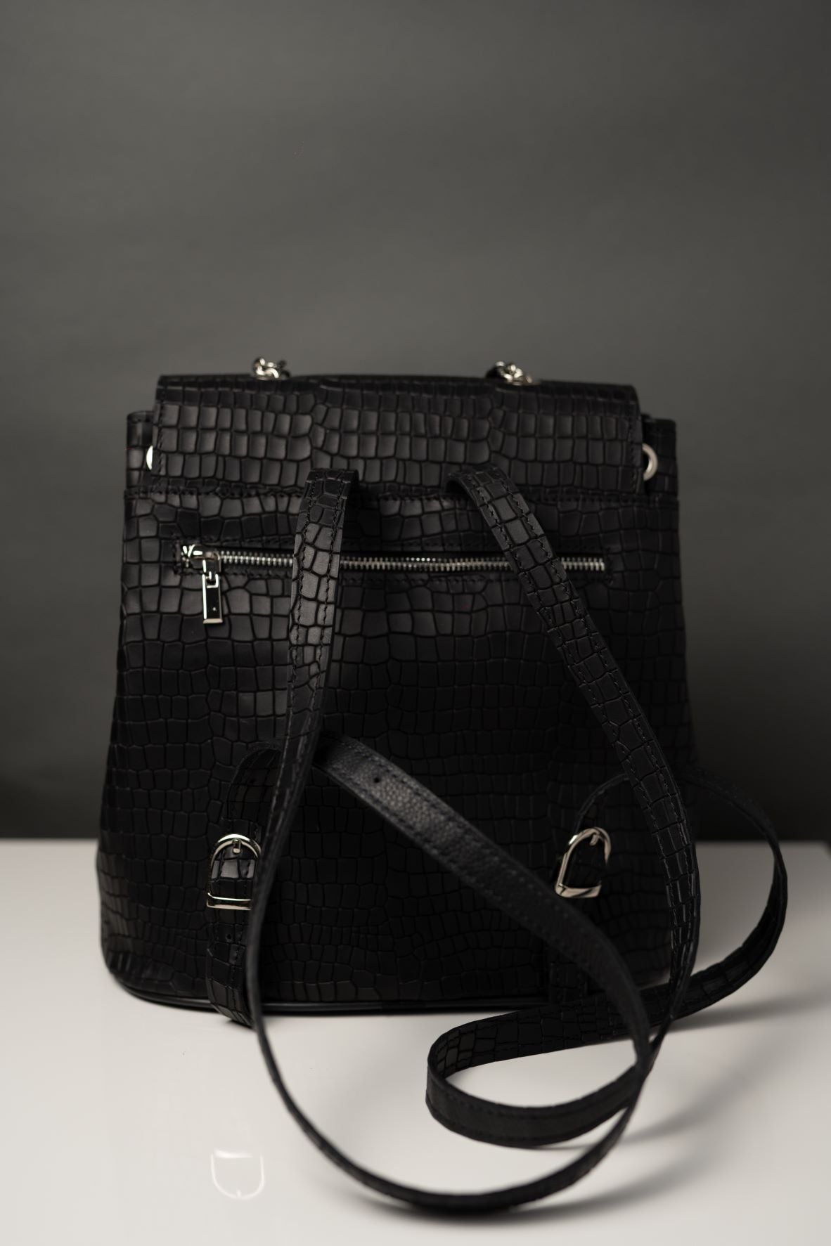 Yes! It`s back again! Black&metal is the new... black. Ghiozdan din piele naturala cu presaj. Lungime: 28Latime: 6Inaltime: 26