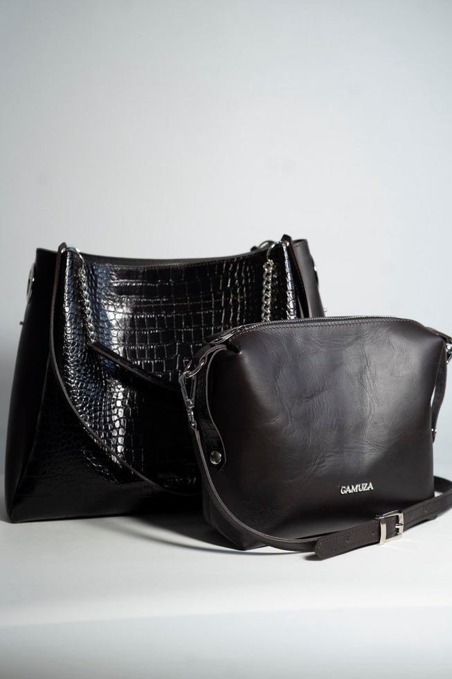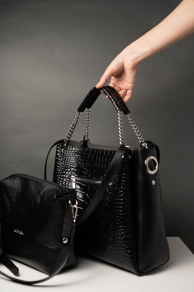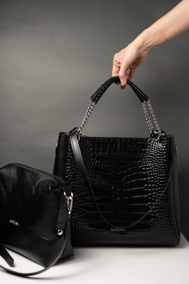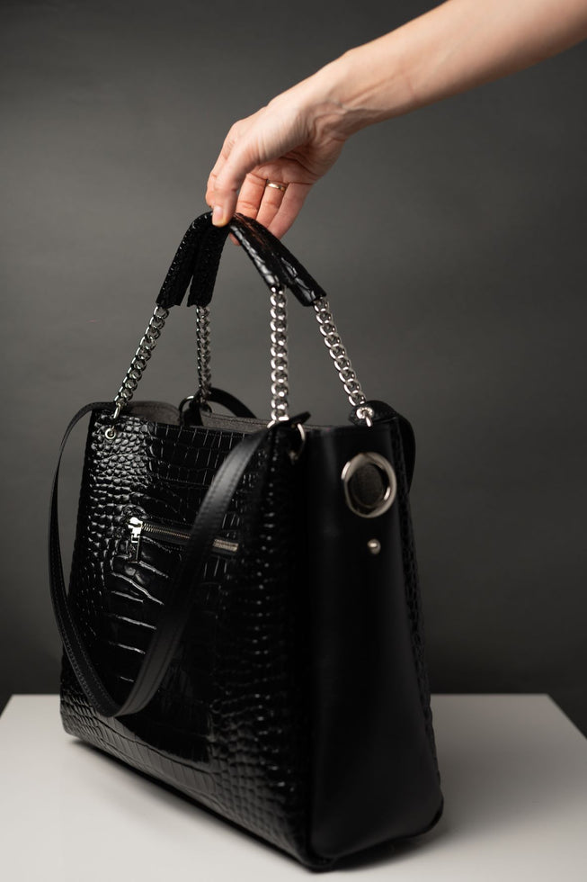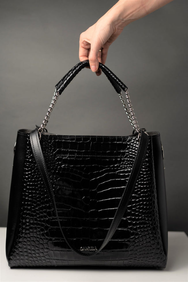 Taguri: gamuza, Genti, mare, Negru, piele croco