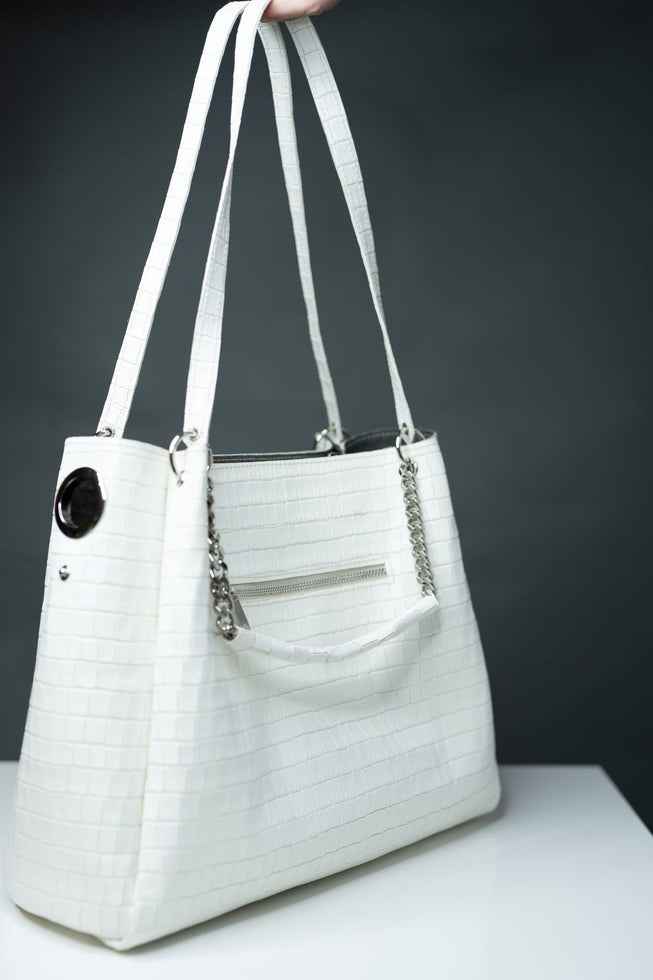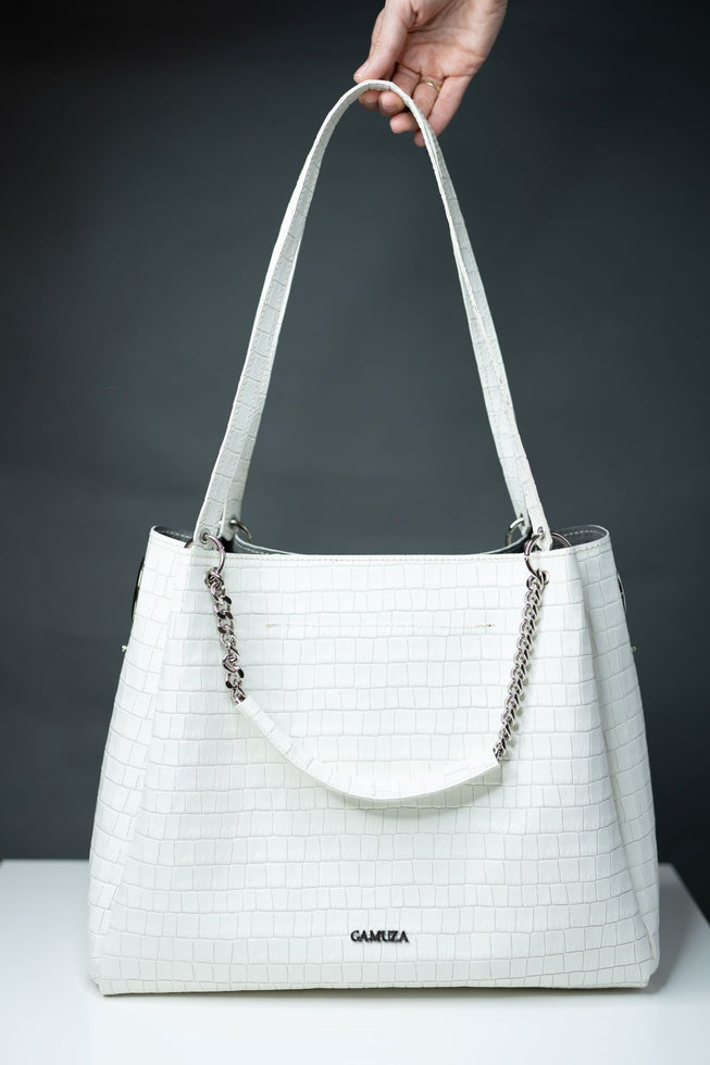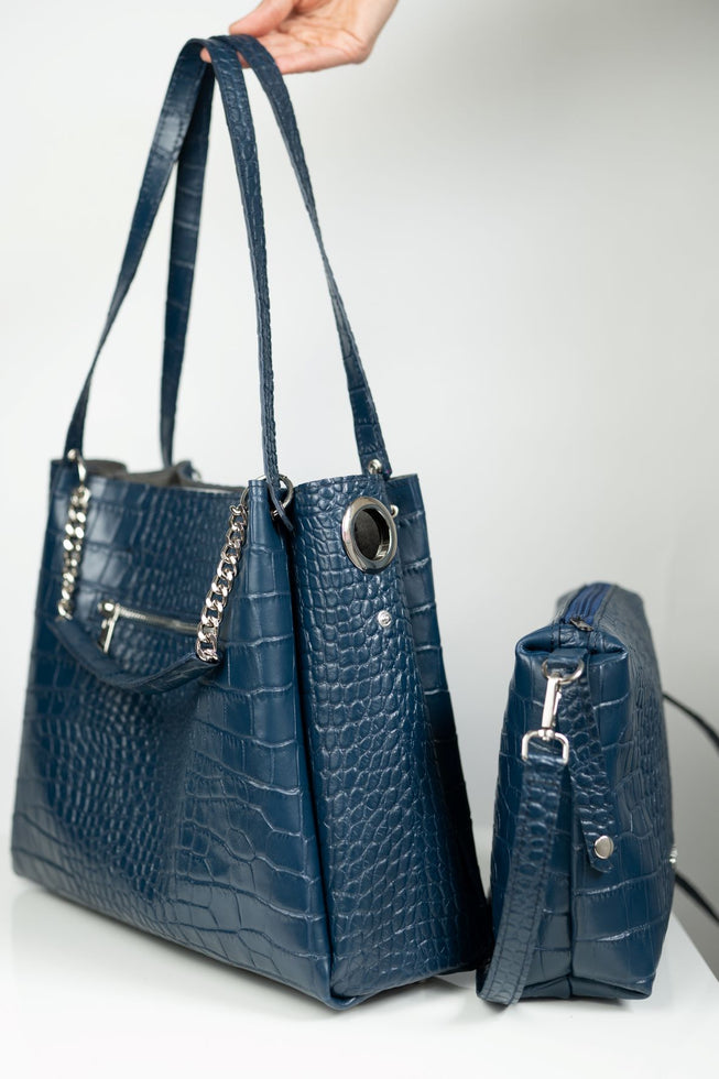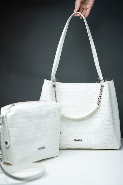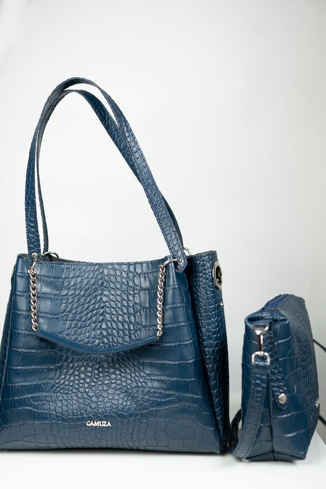 Doua genti intr-una singura. Geanta mica din interior se poate purta si ea individual, avand bareta lunga reglabila. Interiorul...