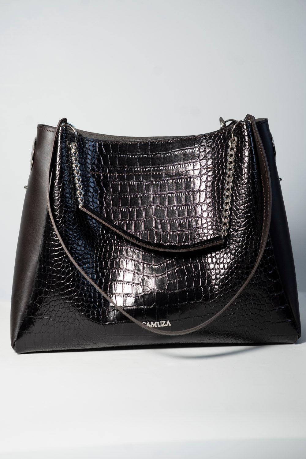 Taguri: gamuza, Genti, mare, Negru, piele croco