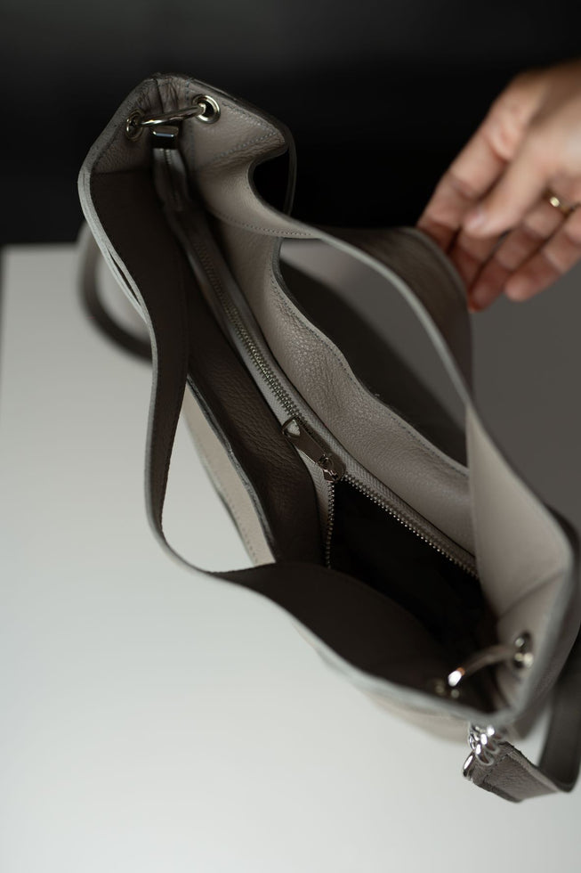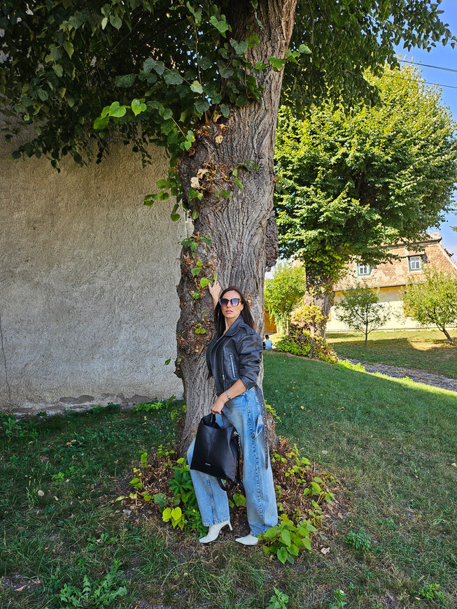 Geanta din piele naturala cu presaj moale. Marime mare. In interior cu buzunare