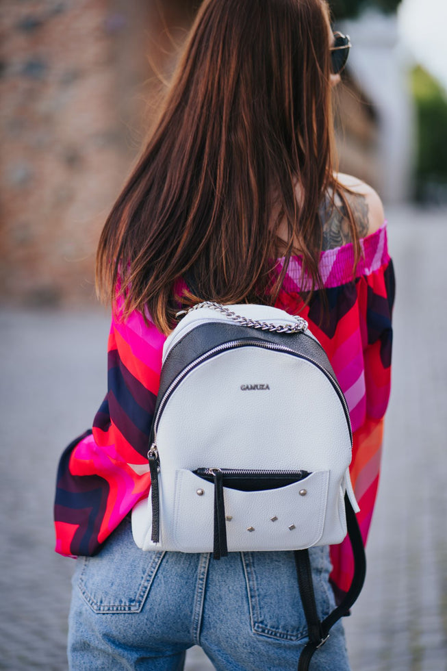 O linie de ghiozdane ce te poarta, cu feminitate, pretutindeni. Casa ta departe de casa. Ghiozdan din piele naturala cu presaj. Marime mare Lungime: 28Latime: 6Inaltime: 26