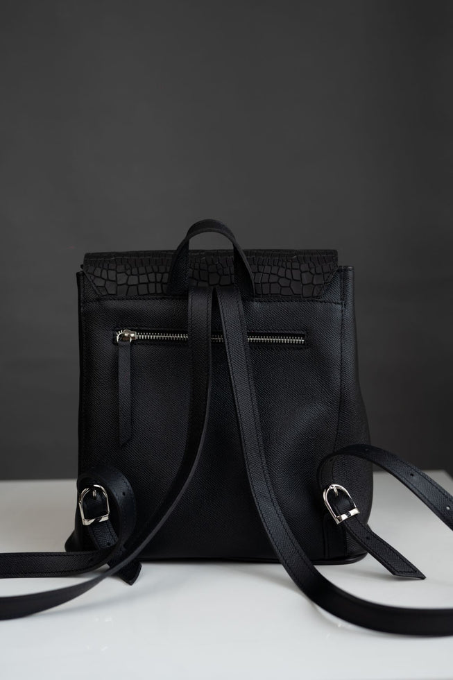 O linie de ghiozdane ce te poarta cu feminitate pretutindeni. Casa ta departe de casa... Ghiozdan piele naturala cu piele imprimeu croco. Marime medie Lungime: 25 Latime: 7 Inaltime: 22