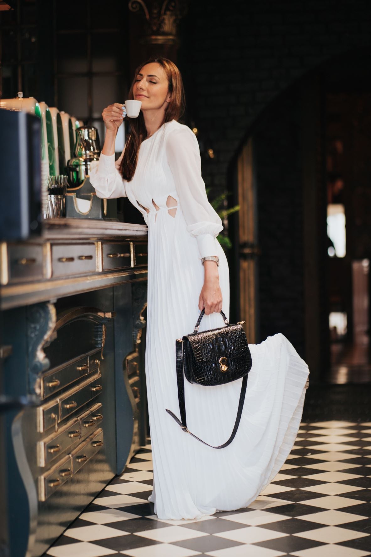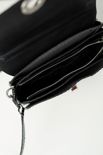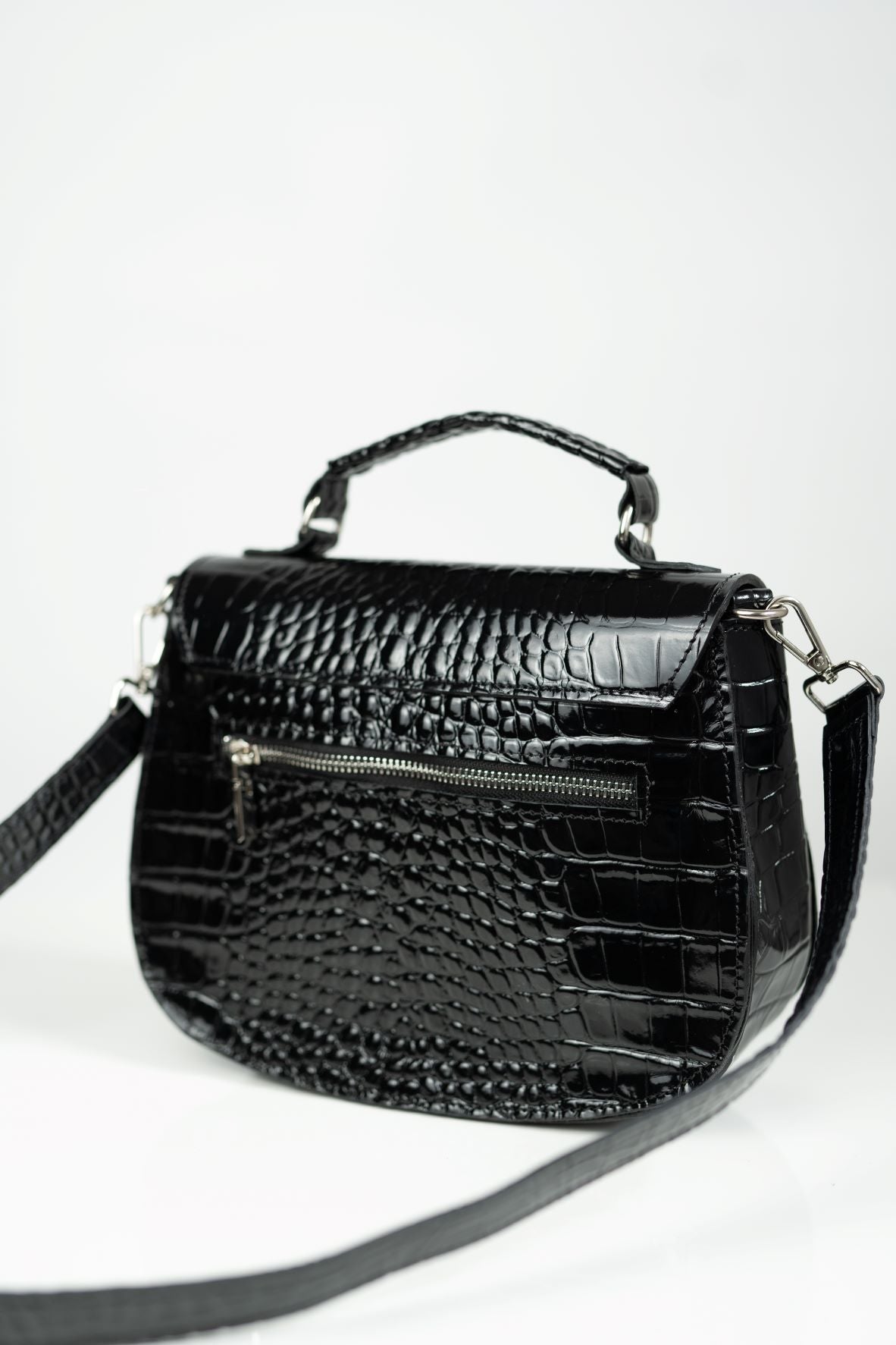 Taguri: gamuza, Genti, medie, Negru, piele croco