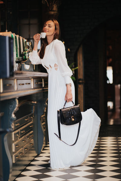 Geanta piele naturala imprimeu croco. Marime medie. Model cu 3 compartimente individuale