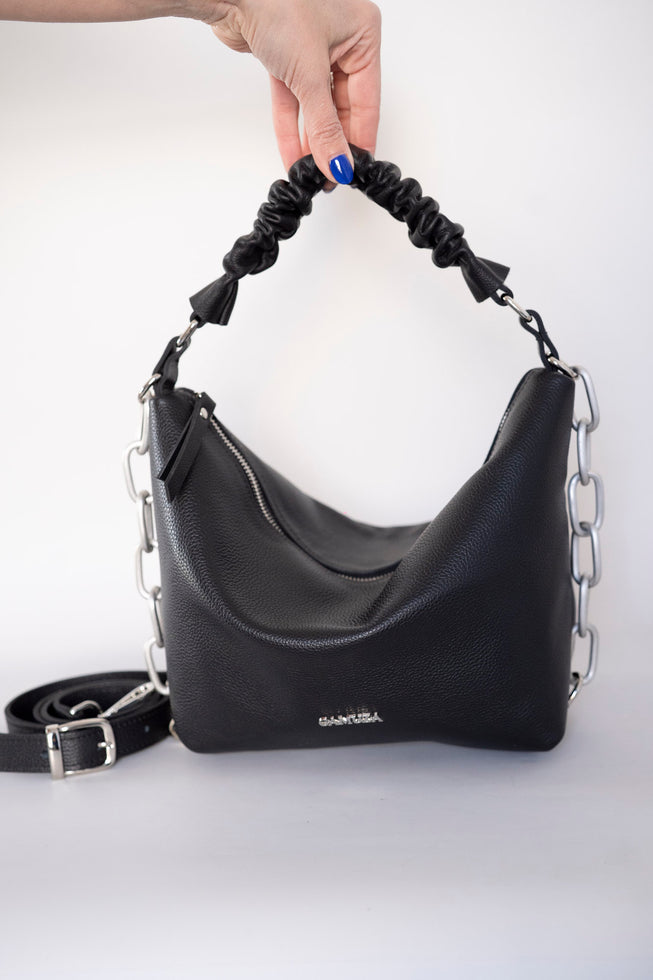 Fie ca mergi la birou, la plimbare sau adopti o tinuta eleganta, dorinta de a fii mereu sexy tine doar de tine.... Geanta tip sac din piele naturala de vita moale si usoara ,de dimensiune medie-mare. Pe fata are un...