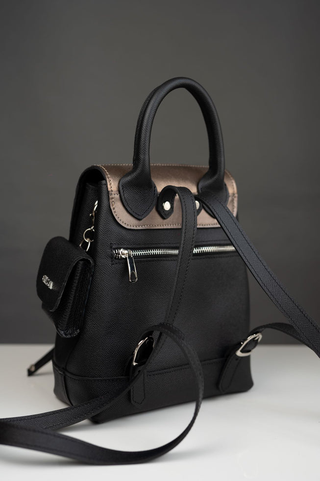 O linie de ghiozdane ce te poarta, cu feminitate, pretutindeni. Casa ta departe de casa. Ghiozdan din piele naturala box. Marime medie Lungime: 25Latime: 7Inaltime: 22