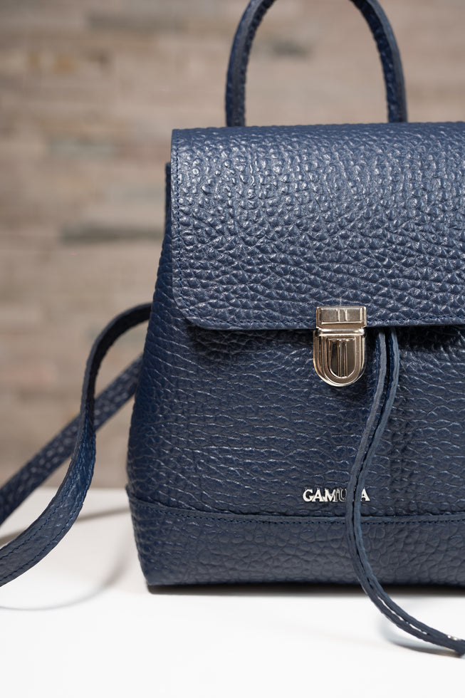 O linie de ghiozdane ce te poarta, cu feminitate, pretutindeni. Casa ta departe de casa. Ghiozdan din piele naturala cu presaj. Marime medie Lungime: 25Latime: 7Inaltime: 22