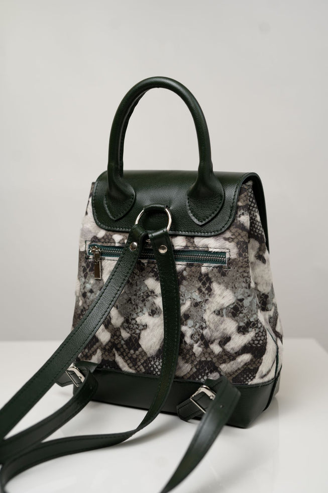 O linie de ghiozdane ce te poarta, cu feminitate, pretutindeni. Casa ta departe de casa. Ghiozdan din piele naturala cu presaj si Imprimeu sarpe. Marime medie Lungime: 25Latime: 7Inaltime: 22