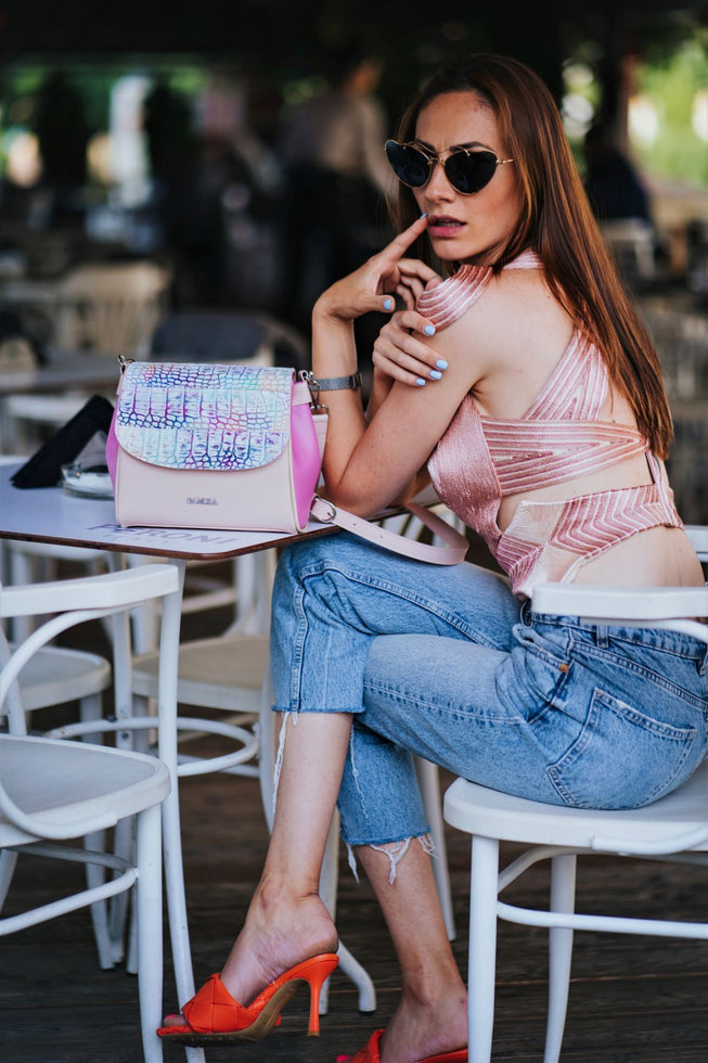 Pentru ca geanta este cea mai apropiata prietena a ta, intuieste mereu ceea ce vrei, ce crezi si ce simti, nu crezi? Geanta piele naturala imprimeu. Marime mica
